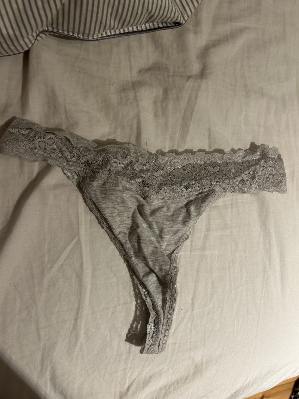 Använda gråa string med spets, använda många gånger och det är synligt.