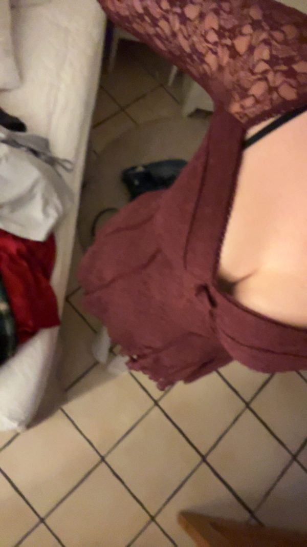 Erotiska bilder i en röd spetsbody