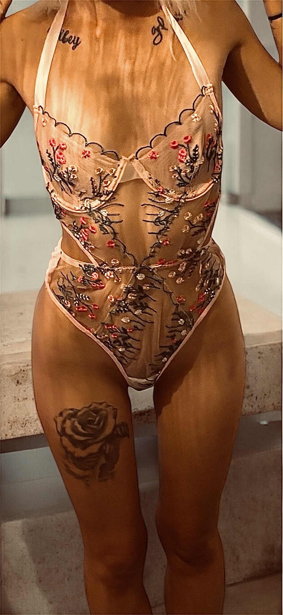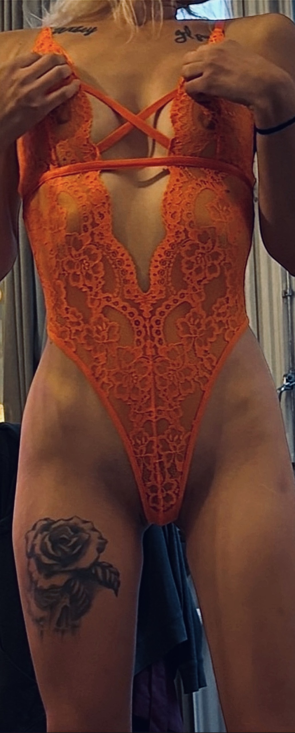 Kåt flicka med våt fitta använder bodysuit