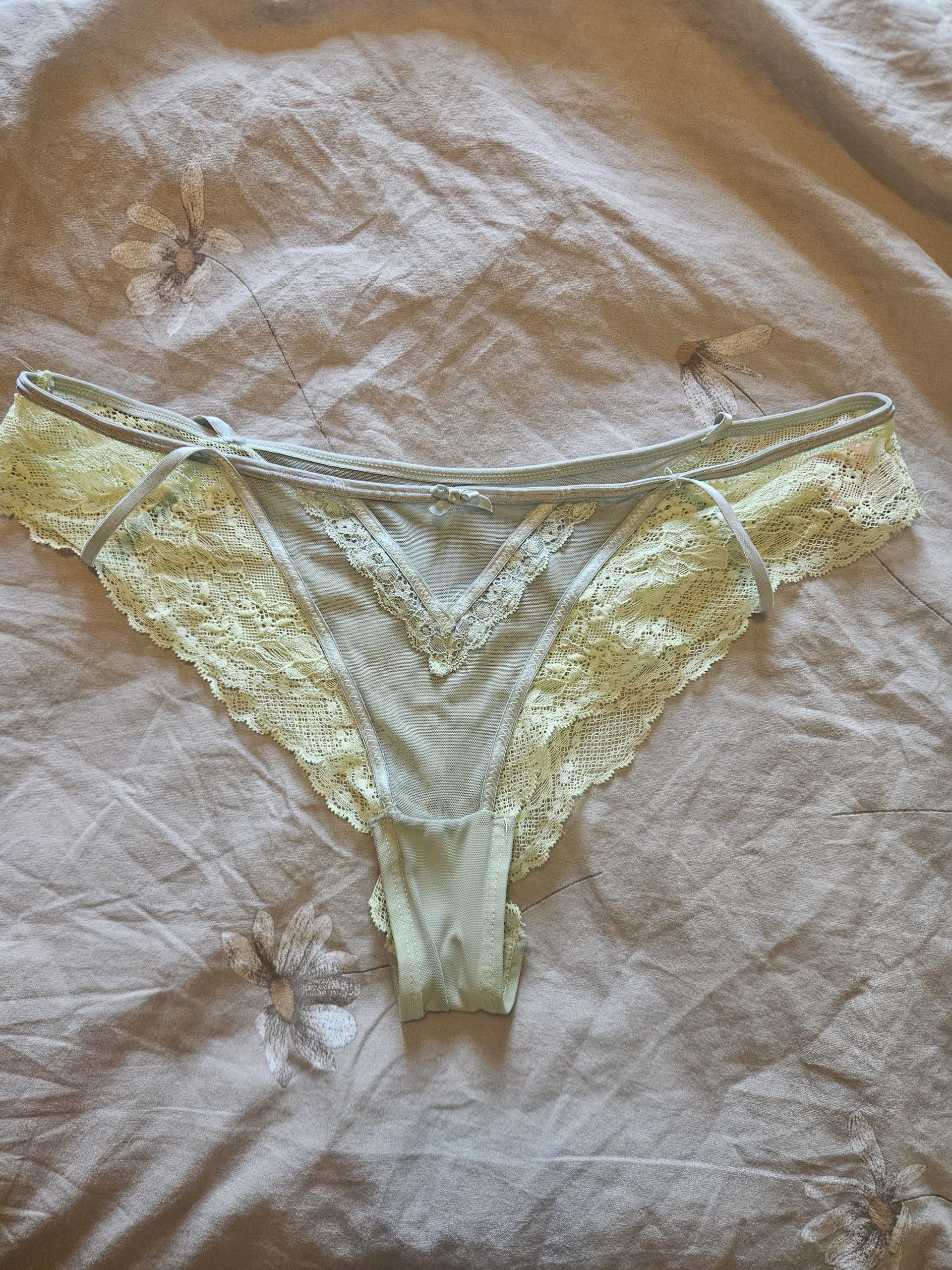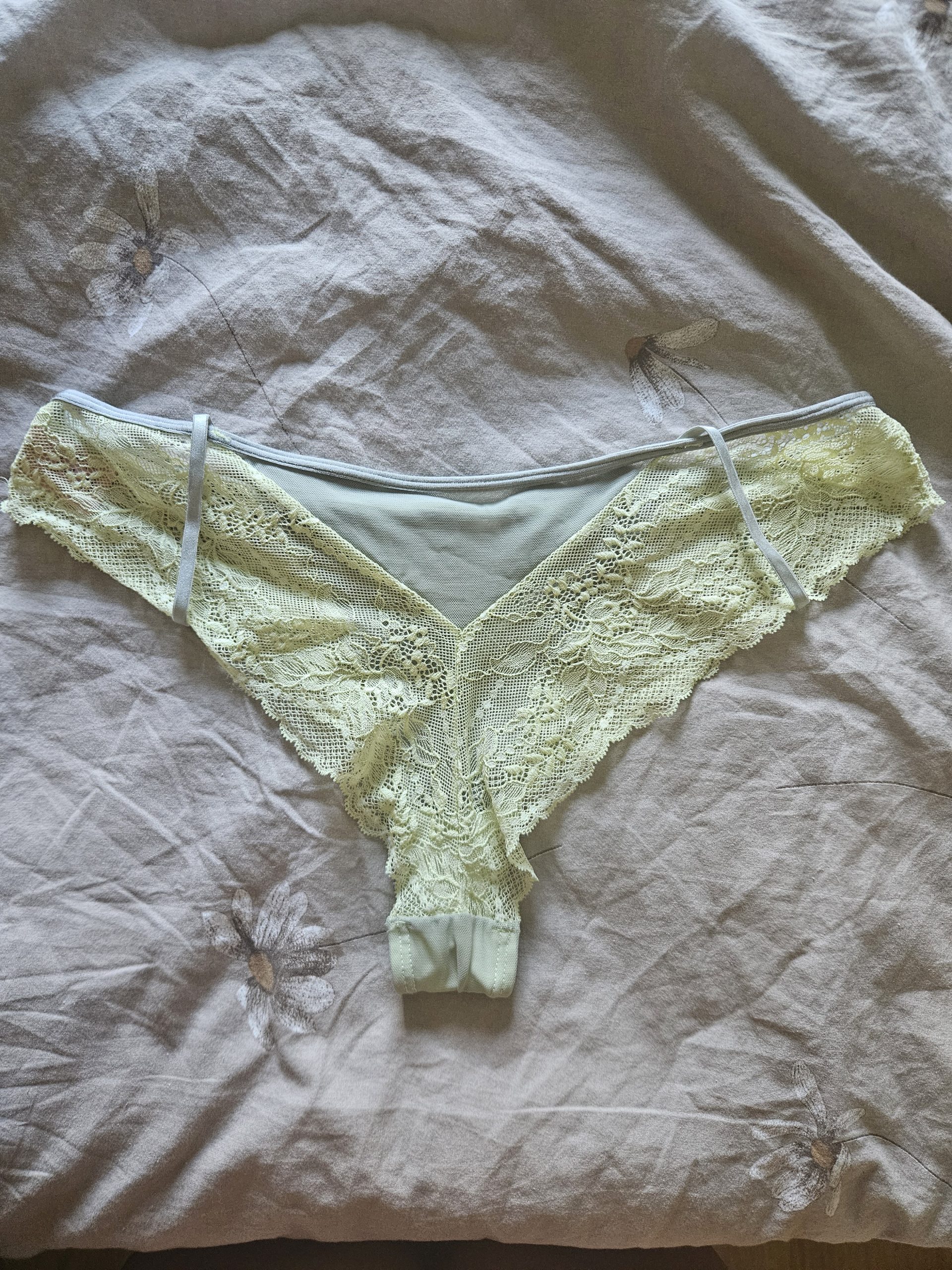 Ett par superheta limegröna trosor där fantasin inte har en gräns. Vill du att trosan ska vara rikitgt våt? Eller ska trosan onaneras i? Eller kanske bara en massa intorkat fittsaft att smaka och lukta på? Allt är möjligt , missa inte din chans!