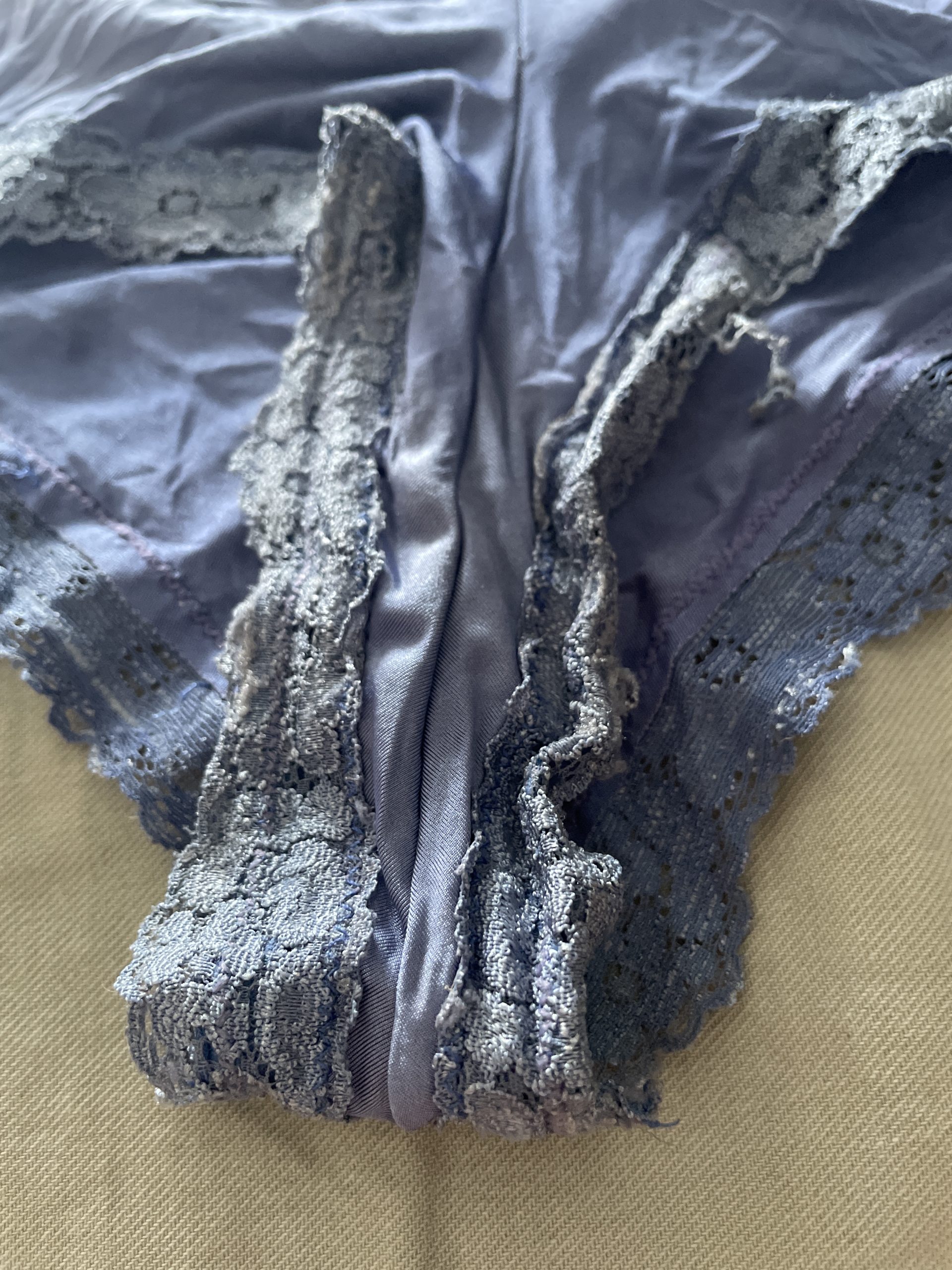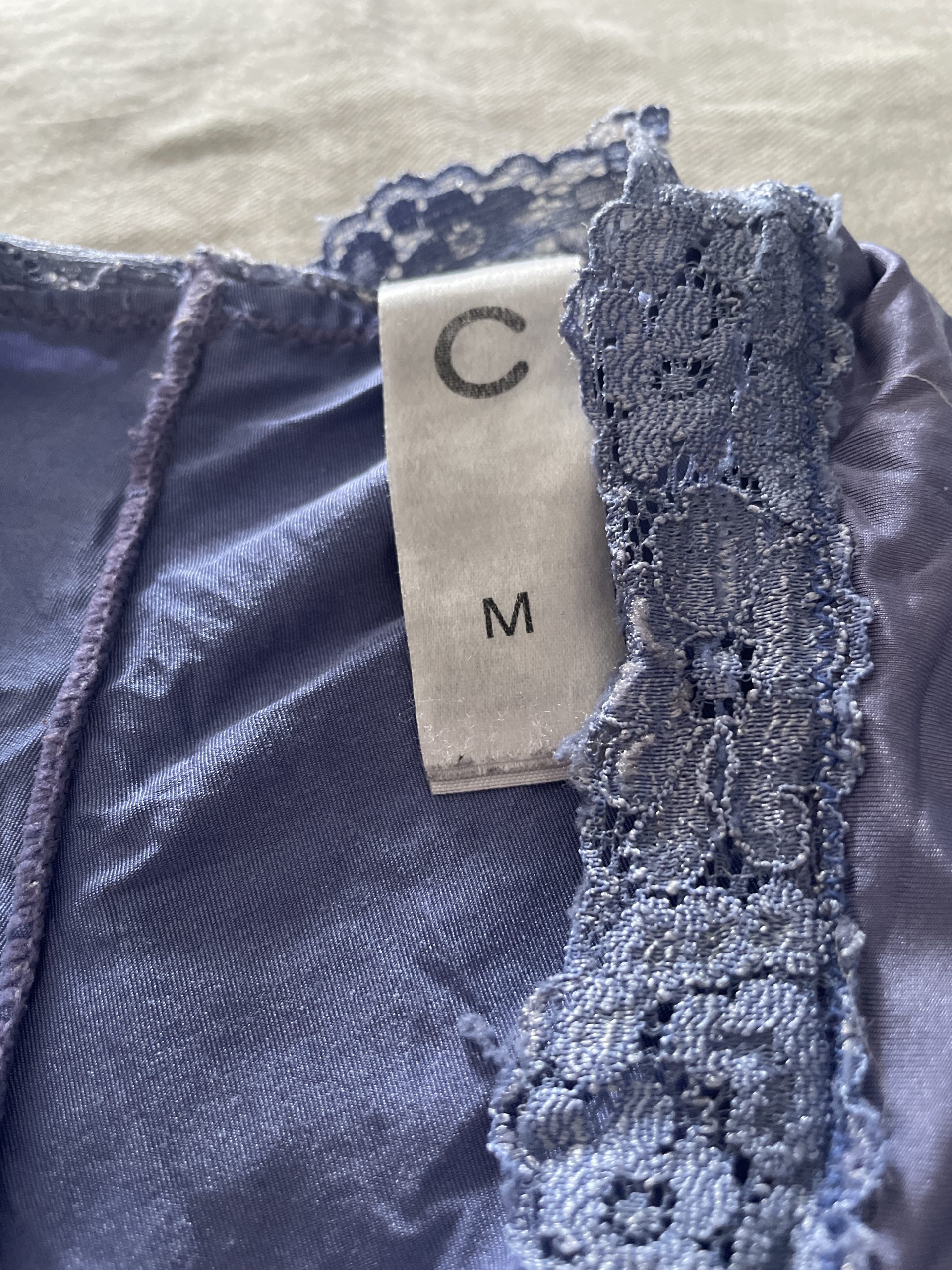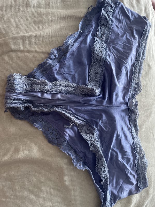Använda mörkblå trosor med spets detaljer