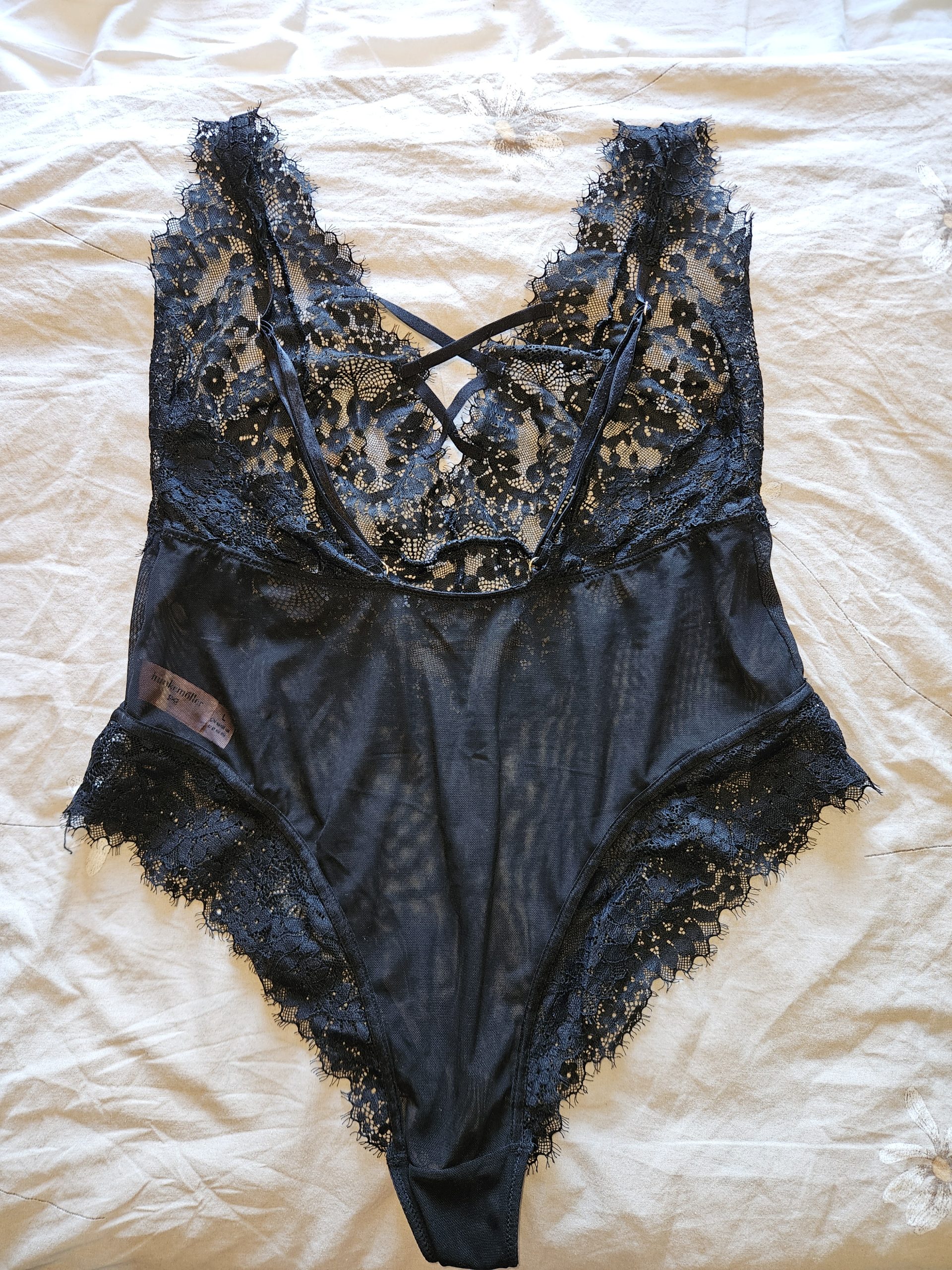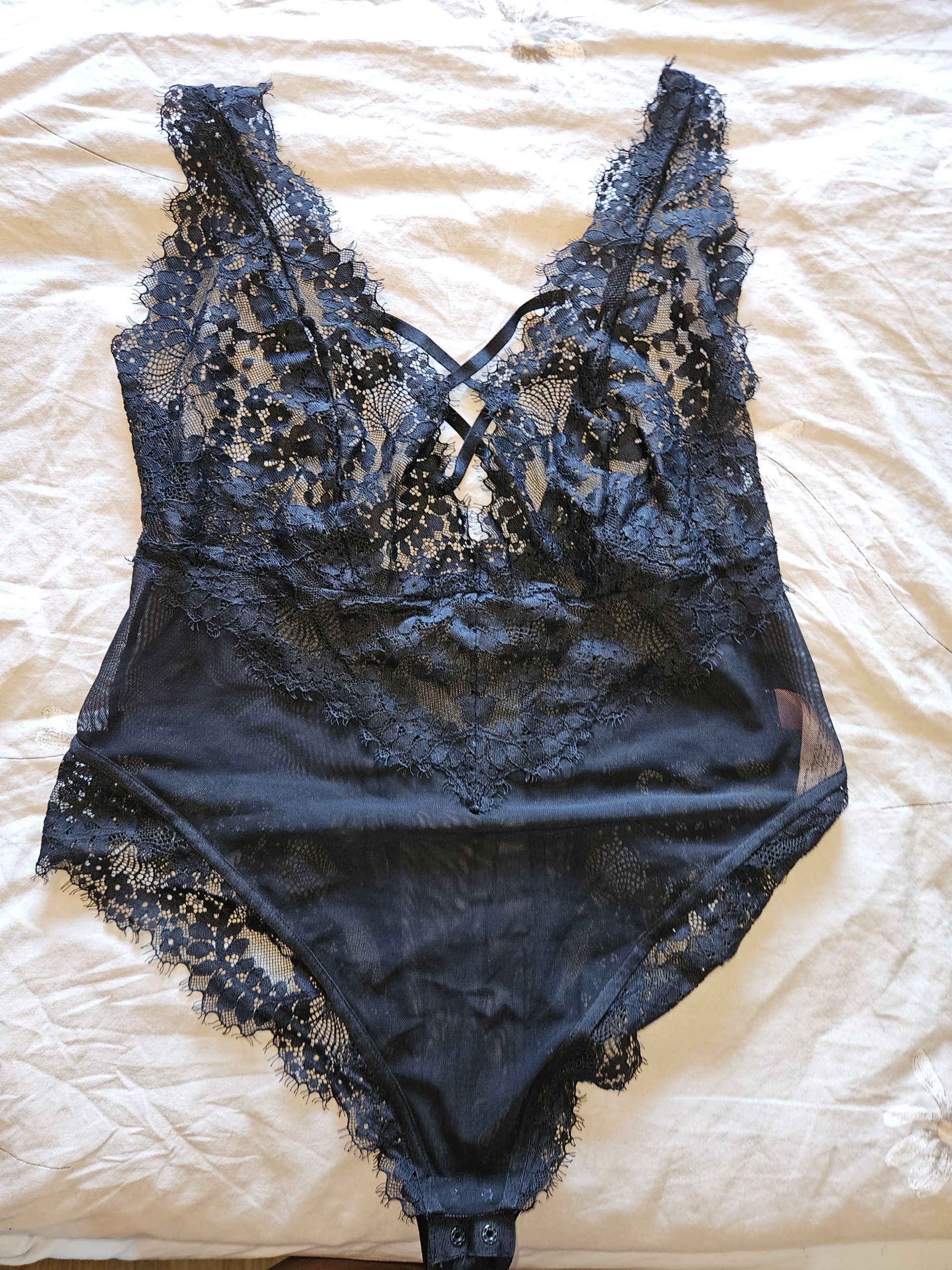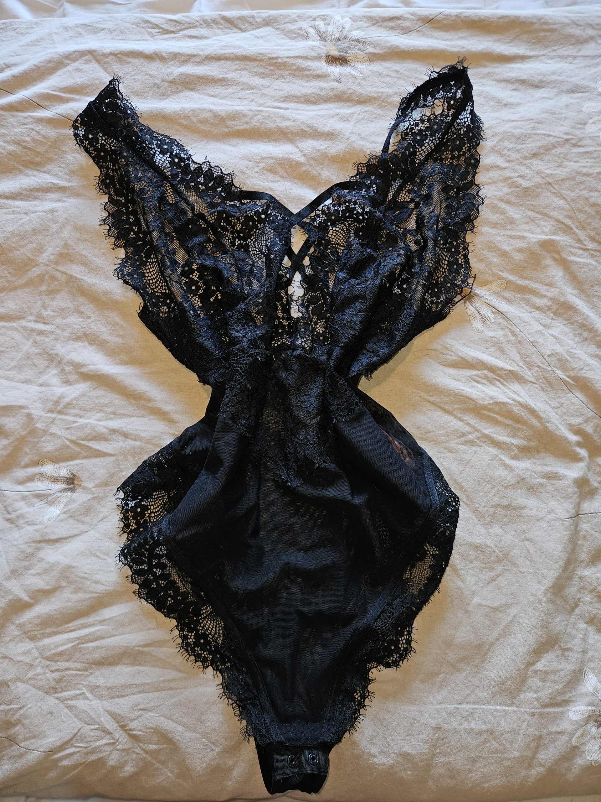 En sexig spetsig svart body som har varit med på ett och annat äventyr. Massa snygga bilder och erotiska videos är tagna med just denna body! Massa tidgare fittsaft från min extremt kåta fitta.