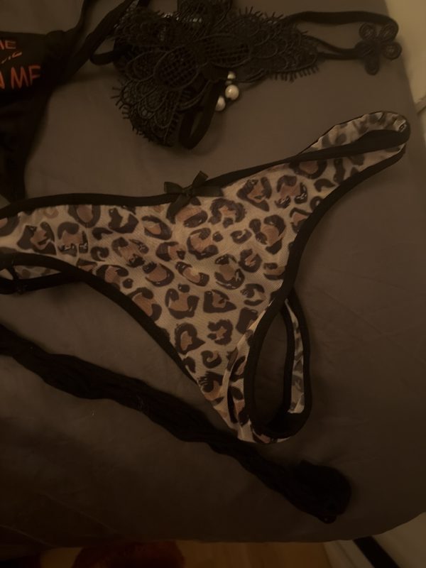 🐾 Leopardstring till salu 🐾 Eleganta och använda stringtrosor med leopardmönster – en tajt modell som sitter riktigt bra! ✨ Tillval: bild och video finns tillgängliga mot extra kostnad 💫 Har du speciella önskemål? Berätta gärna! Jag kan anpassa efter dina önskemål, såsom att visa mig i trosorna med video, eller bära dem i ett antal dagar