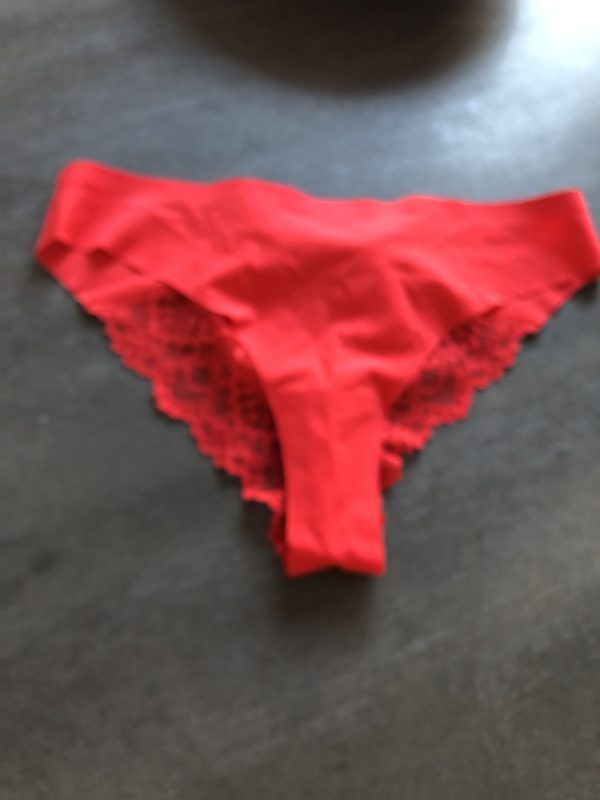 Supersöta röda trosor i lent material med lite spets.