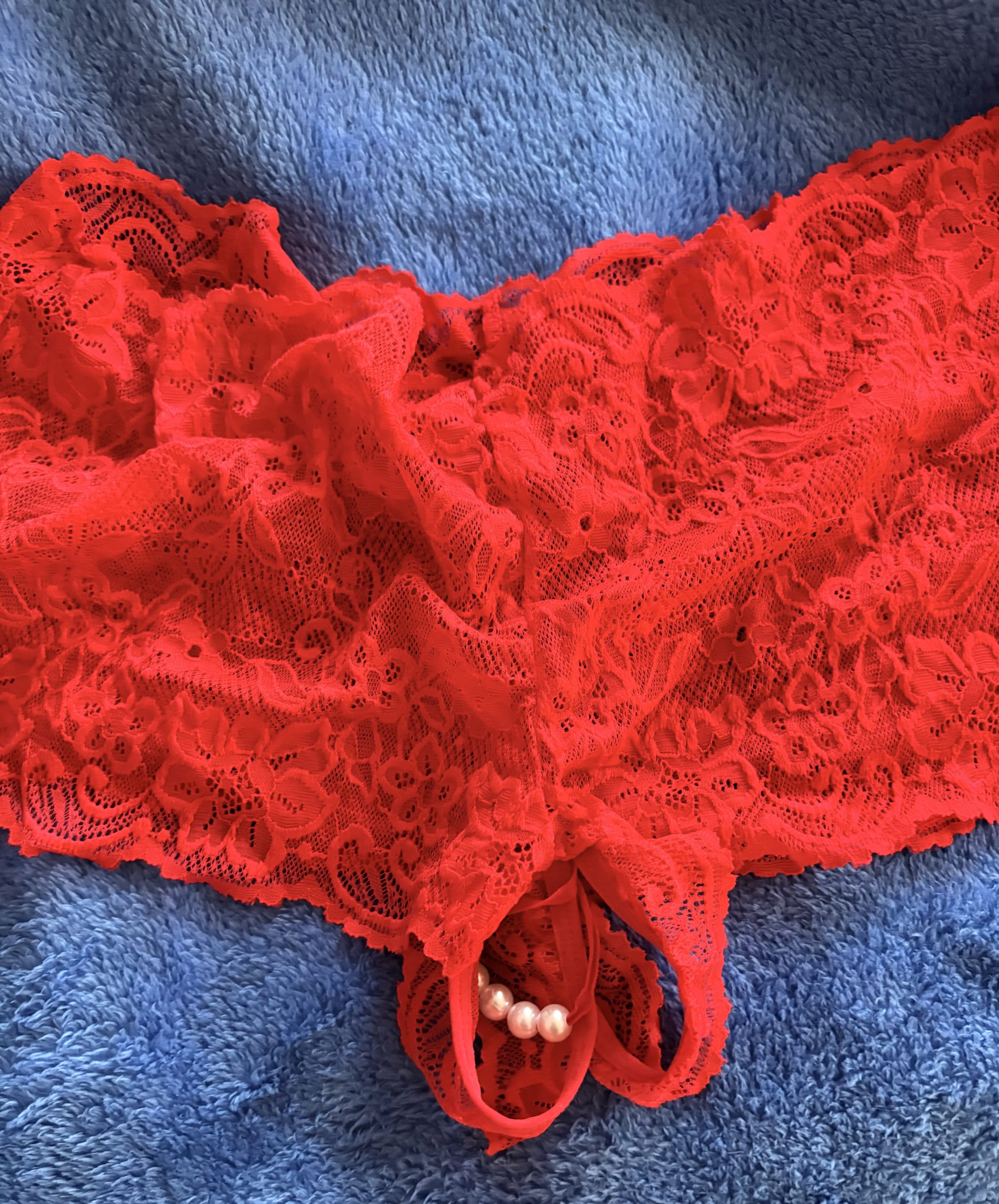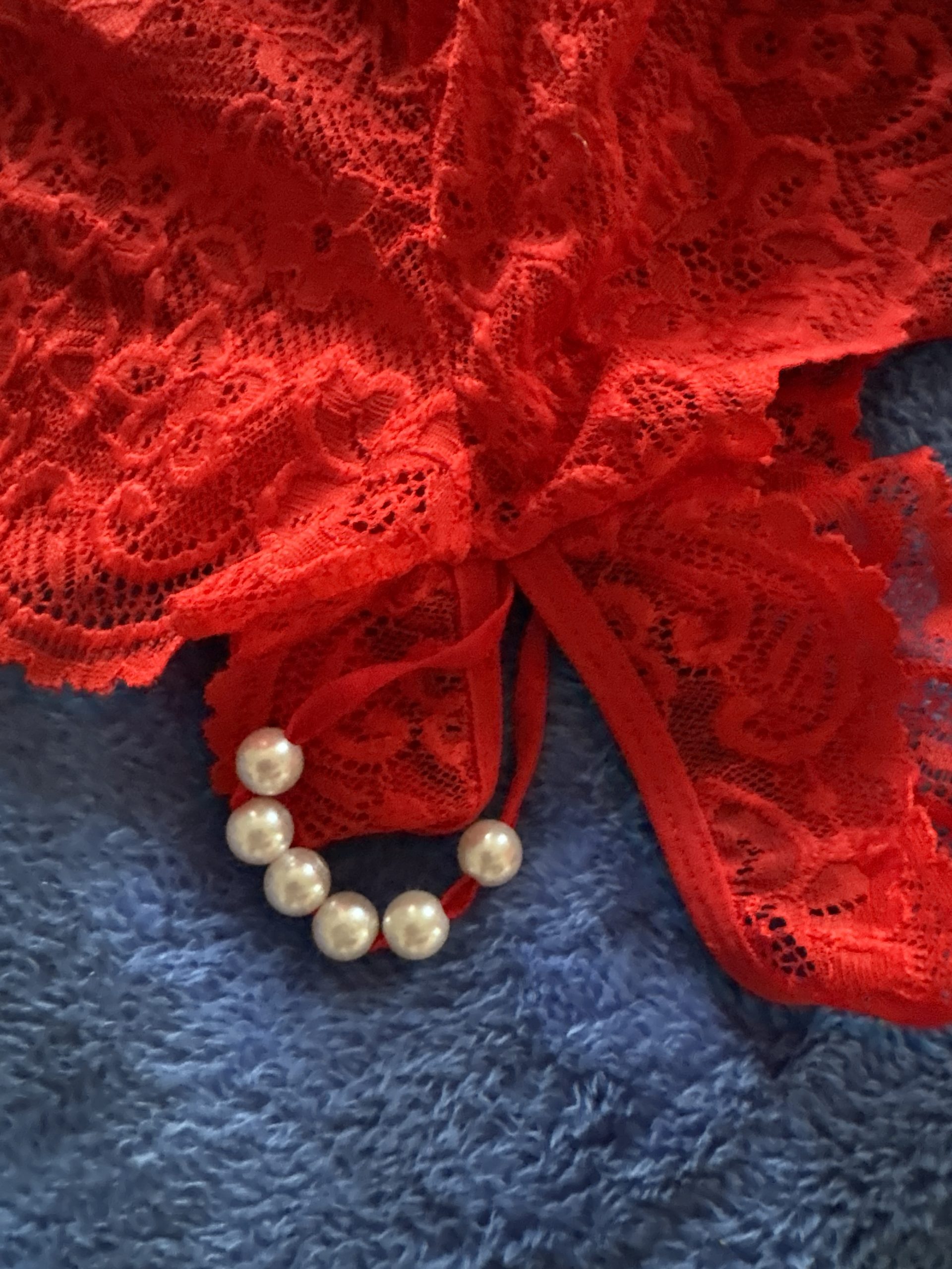 Röda trosor med pĂ€rlor i grenen som stimulerar klitoris skönt nĂ€r man rör sig đđ„°